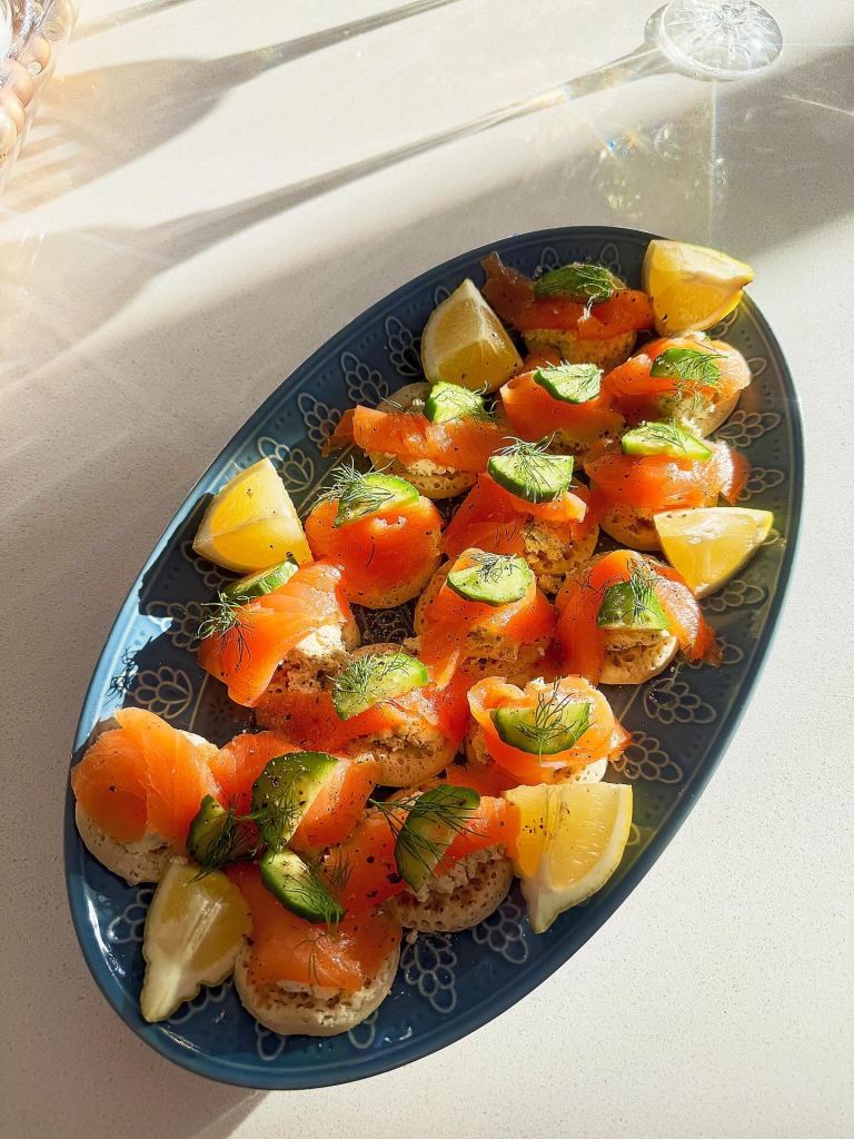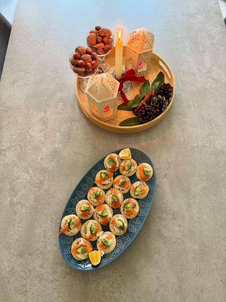 I was in charge of canapés for which I made three different ones. First of all, smoked salmon cream cheese blinis are an absolute must on Christmas Day for me.