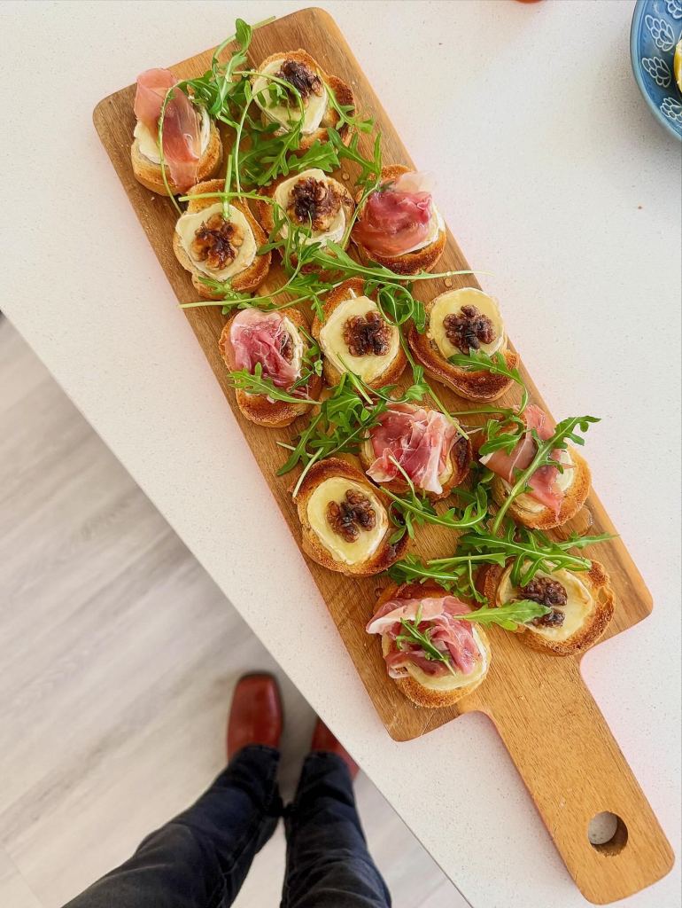 I also did honey glazed cocktail sausages and a goats cheese, walnut, prosciutto, honey bruschetta inspired by an appetiser we had in Mallorca earlier this year.