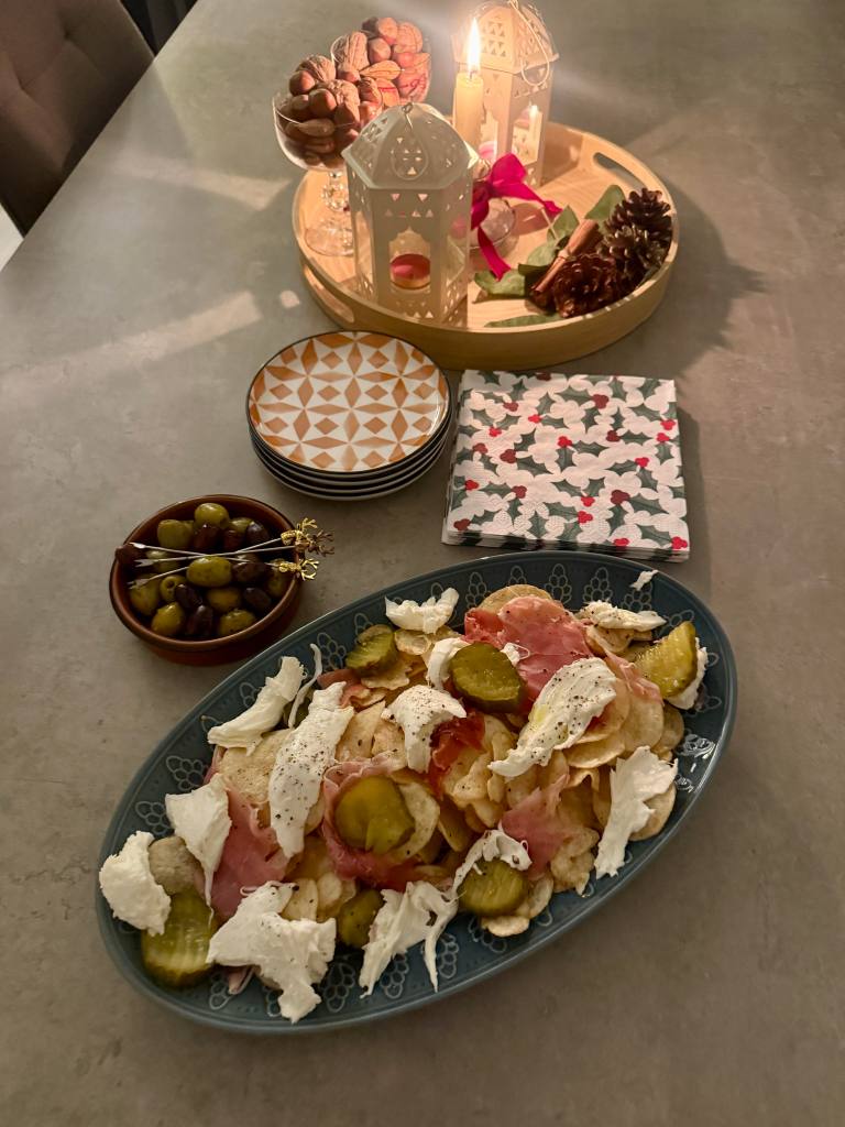 We were heading to the pub for a late lunch following our gift exchange, so I put out some nibbles as well as another batch of the leftover smoked salmon blinis.