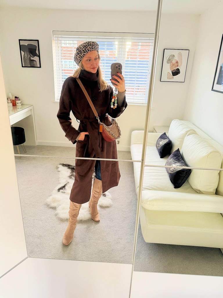I wore my new ASOS brown faux suede trench coat with the statement collar buttoned across and it looked super chic.