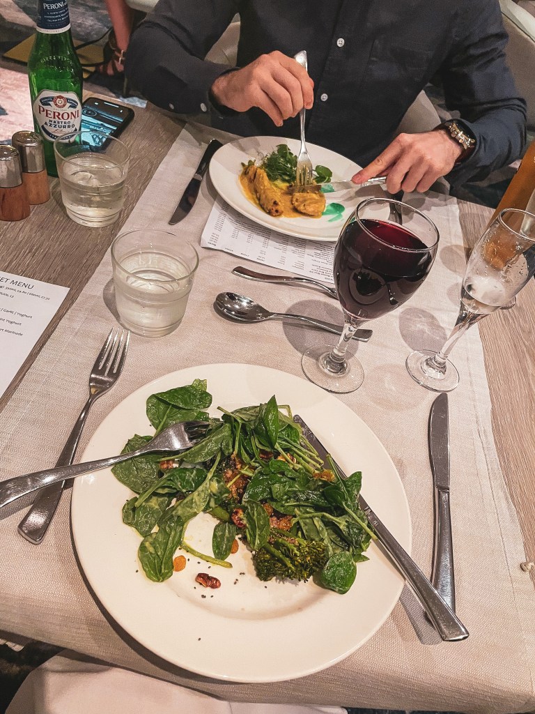 To finish the meal I had a simple fruit platter with a refreshing sorbet and delicate sweet chocolate soil. The warm chocolate brownie served with white chocolate and pistachio ice cream was my boyfriend’s desert of choice. Needless to say, we both cleaned our plates and went to bed feeling content and satisfied from such a fantastic three course dinner at Caprice Restaurant.