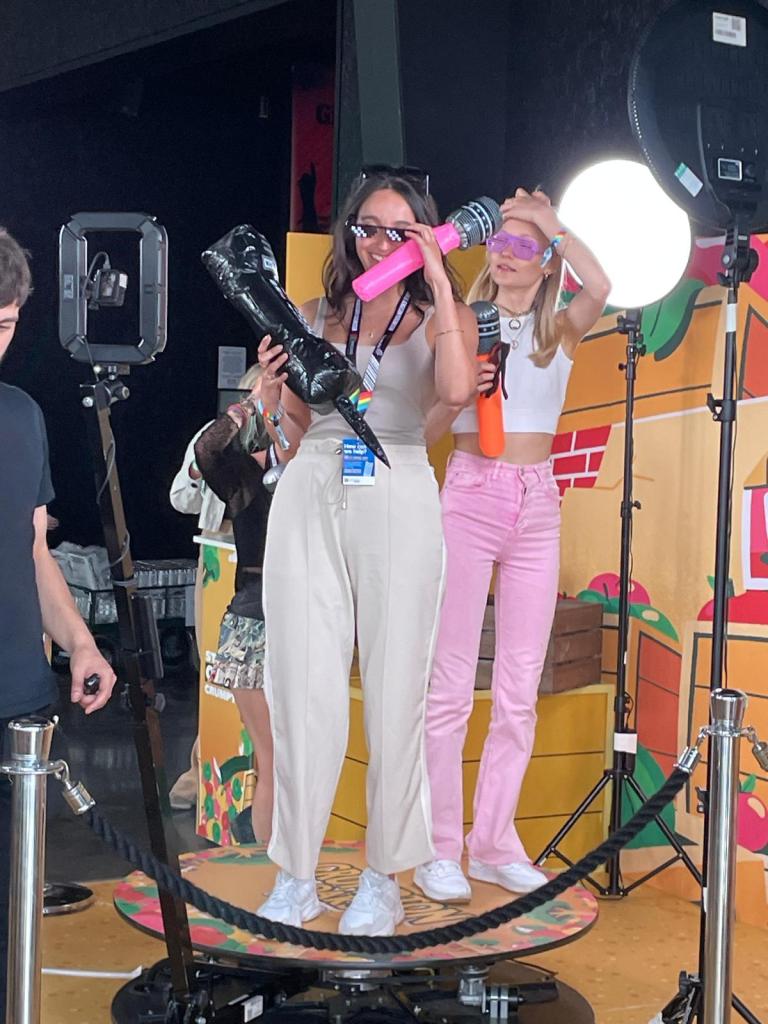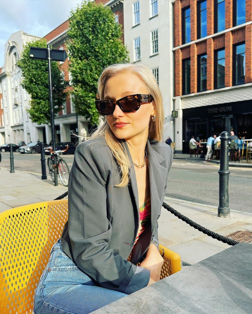 For the occasion I wore this vibrant pink corset top from Zara, my straight cut Stradivarius jeans, a pair of khaki green mules from Next, a cropped grey blazer and my MiuMiu sunnies to complete the look.
