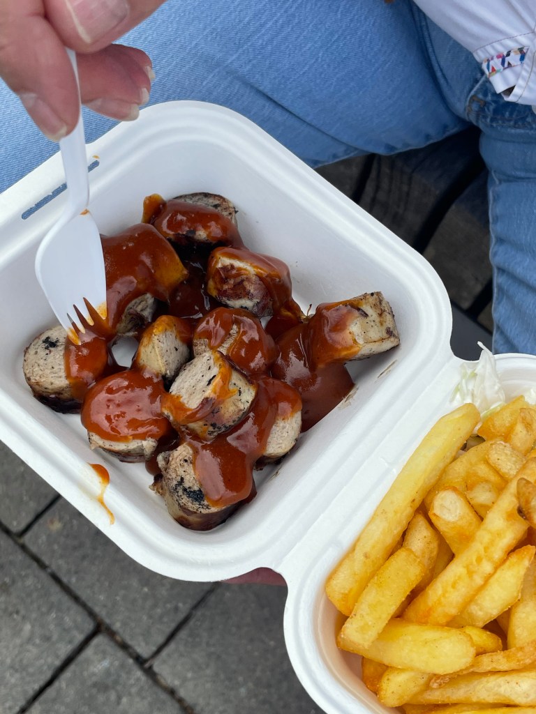 My parents were given their first experience of Currywurst, an authentic German fast-food consisting of fried pork sausage, typically cut into bite-sized chunks and seasoned with curry ketchup, which my dad very much enjoyed for his lunch.