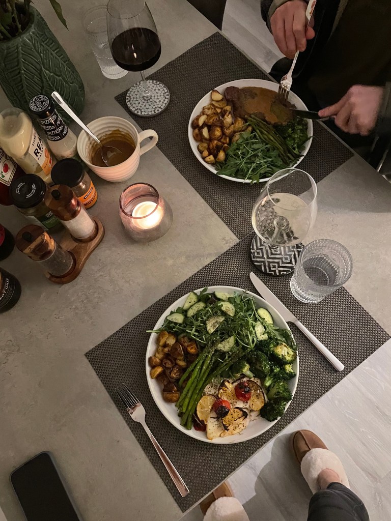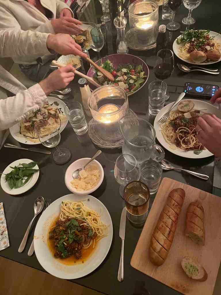 My mum cooked her famous Spaghetti Bolognese and I did what I do best making a big salad of rocket, cherry tomatoes, avocado, parmesan shavings and balsamic vinegar. Good company, home cooked food and divine red wine, this made me a very happy girly.