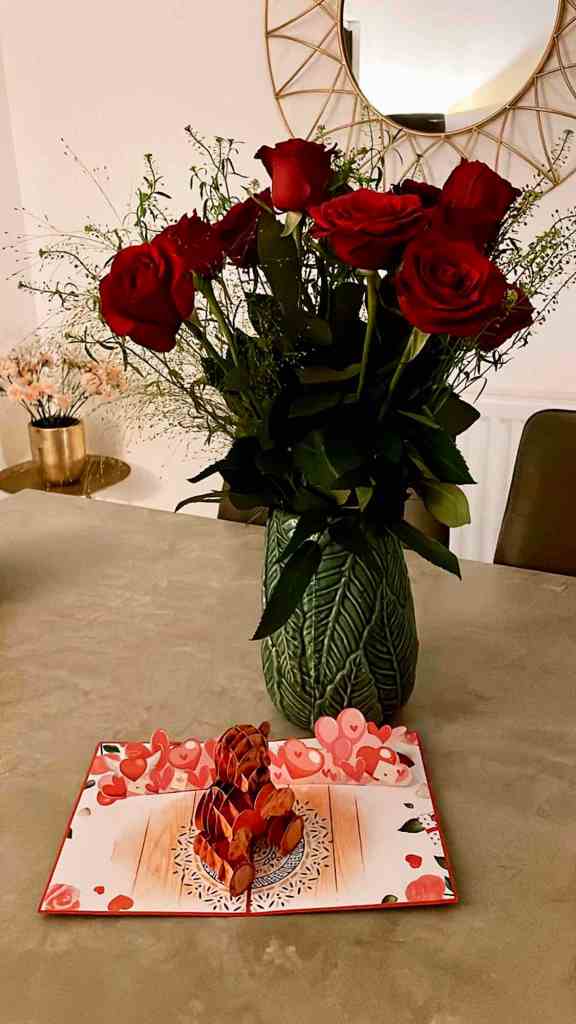 My boyfriend surprised me with this gorgeous bunch of red roses and the cutest card with a pop-out teddy bear.