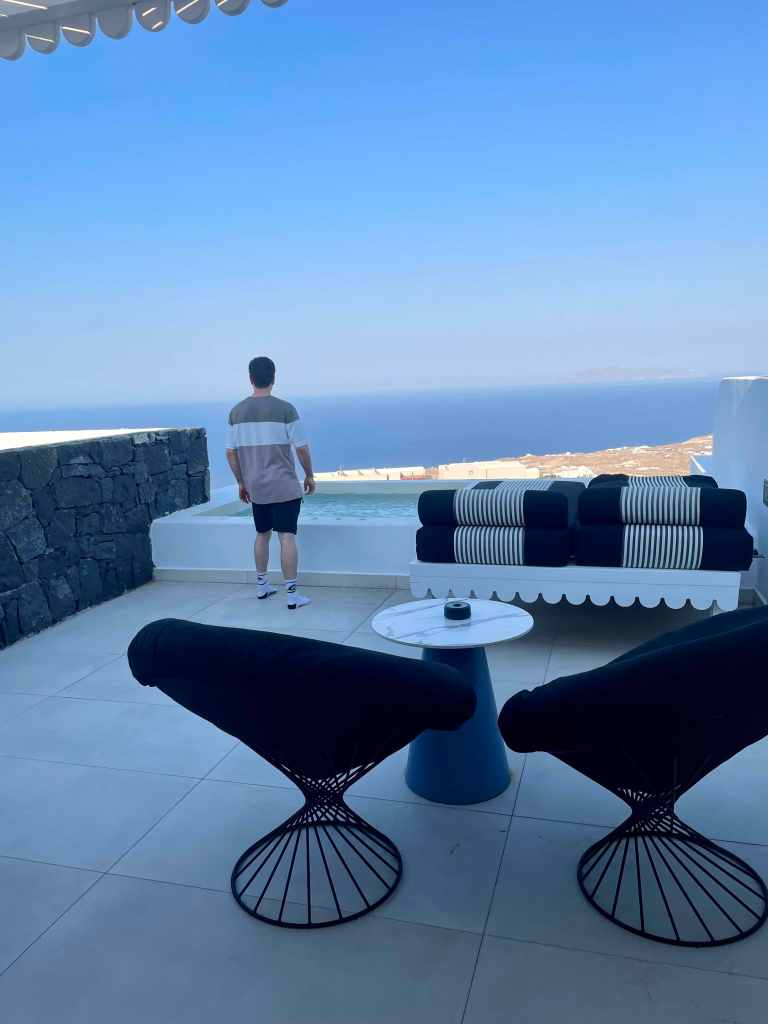 We stayed at Cresanto Luxury Suites in the town of Imerovigli situated between Fira and Oia. Whilst this is a newly opened hotel which is still finding its feet in terms of delivering a 5* service, it was a great location and our spacious room with the private balcony and plunge pool with sea view was fantastic.