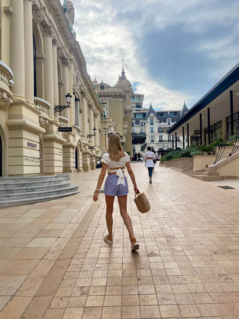 My all white fit with a touch of blue stripes was giving nautical vibes, very fitting for our first evening in Monaco harbour.