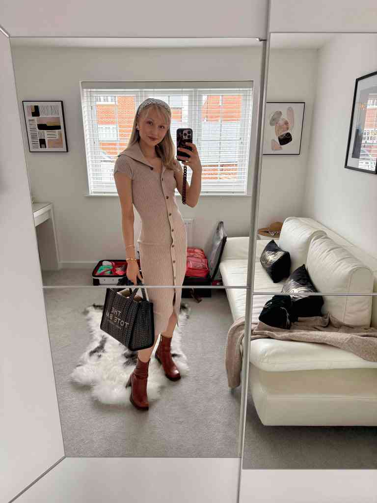 My fit for the evening was my favourite dark wash flared Stradivarius jeans, this long sleeve backless mushroom colour top from Bershka,Stradivarius cowboy boots, vintage inspired oversized gold ASOS earrings, a cute chocolate brown knitted beret from Urban Outfitters and my velvet green Sandro handbag.