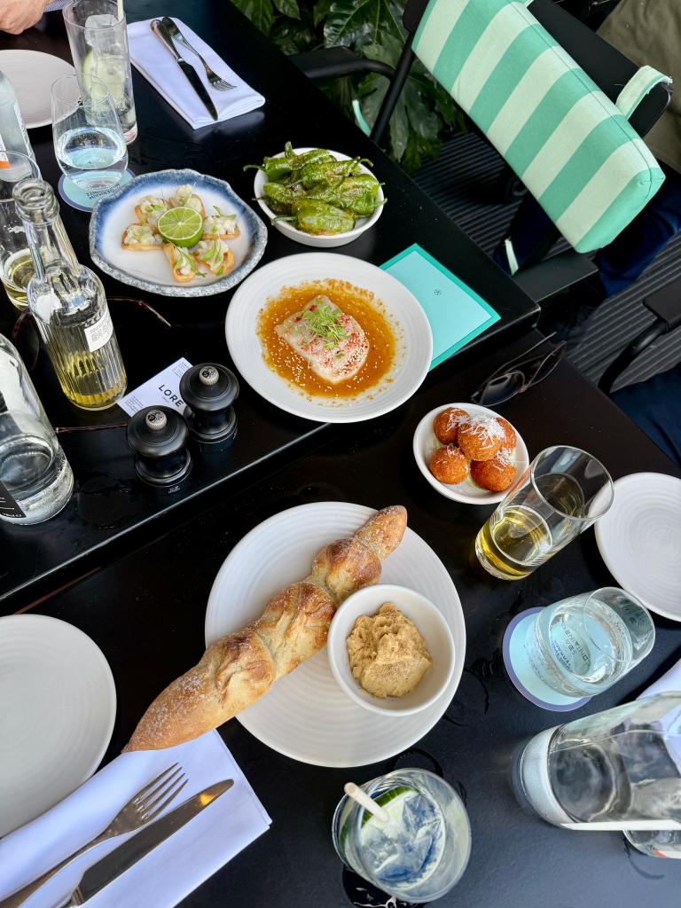 To start we shared a few appetisers including the SeaCo Bread with Marmite Butter, Yellowtail Tuna Crudo with Citrus Seasame Chilli, Four Cheese Croquettes with Jalapeño Mayonnaise, Blistered Padron Peppers and Seabass Ceviche Tacos with Red Onion Coriander Salsa.