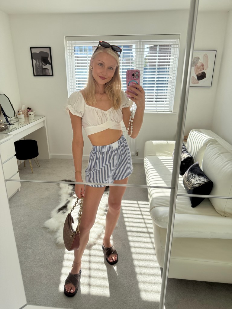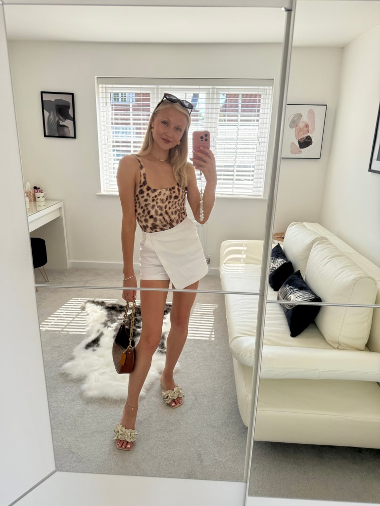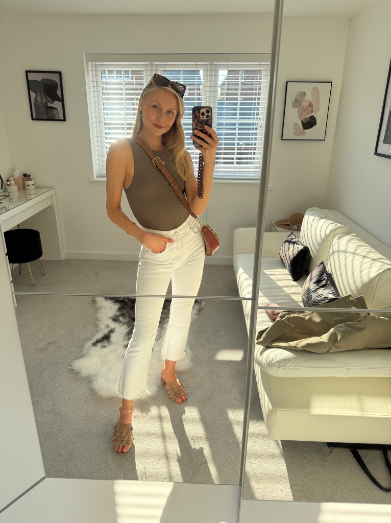 For the occasion I wore my white flared Mango jeans, Pull & Bear cream high neck vest, Next green mules, matching green Moncrief handbag, Celine round sunglasses and my Le Scarf silk neck scarf to complete the look. Classy and chic but still fun and cute for a Friday fit.