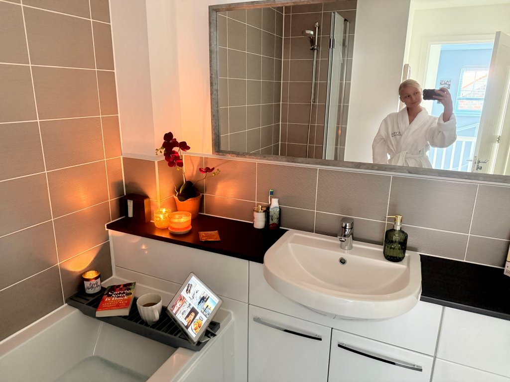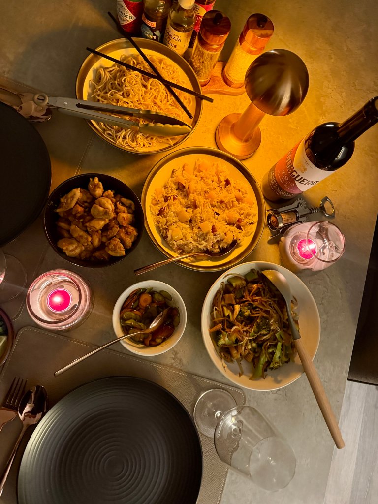 It’s become a weekly ritual for us to have a date night every Saturday, so this week I decided to put my chef hat on and cook a delicious spread of Asian food for an at home ‘fakeaway’ style feast for two. But first, I started my evening wind-down with a bubble bath complete with candles, a cup of tea, a book and my iPad for some Pinterest scrolling.
