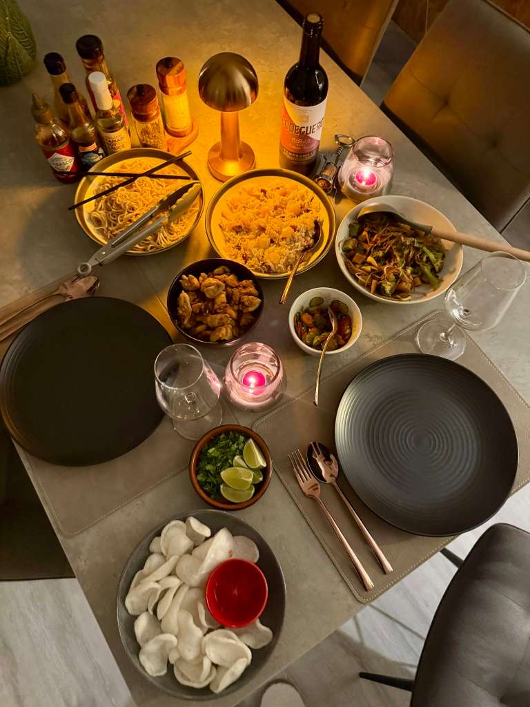 Candles lit, music playing and wine poured, the romantic at home date night aesthetics were on point.