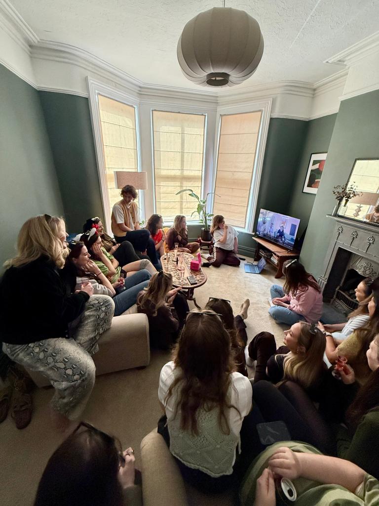 Proud of our creations, some more artistic than others, we headed to one of the bridesmaid’s houses where Dominos pizzas and more bubbles were waiting.