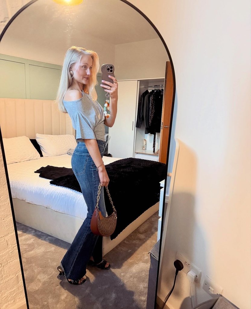 The vibe was effortlessly cool, and so was the outfit with a pair of dark wash denim, a grey off the shoulder asymmetric top, leopard print mules, and my trusty Coach handbag.