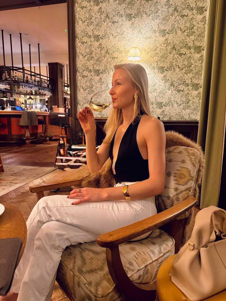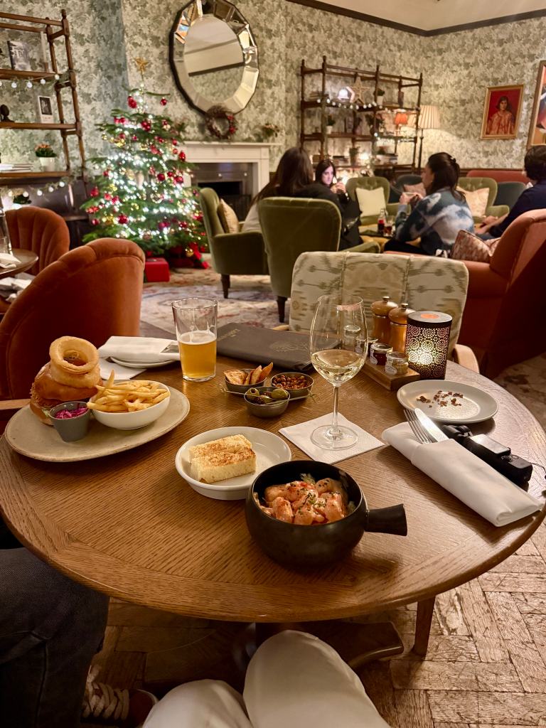 After a scenic stroll around the grounds, we were seated in the stunning bar area which gives serious old money vibes with its plush sofa seating, elegant chandeliers, and feature fireplace.