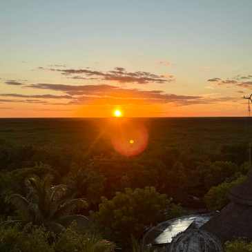 Those jungle sunsets just hit different with the sun dipping gently behind layers of green, disappearing into the earth as if the jungle itself is cradling it for the night.