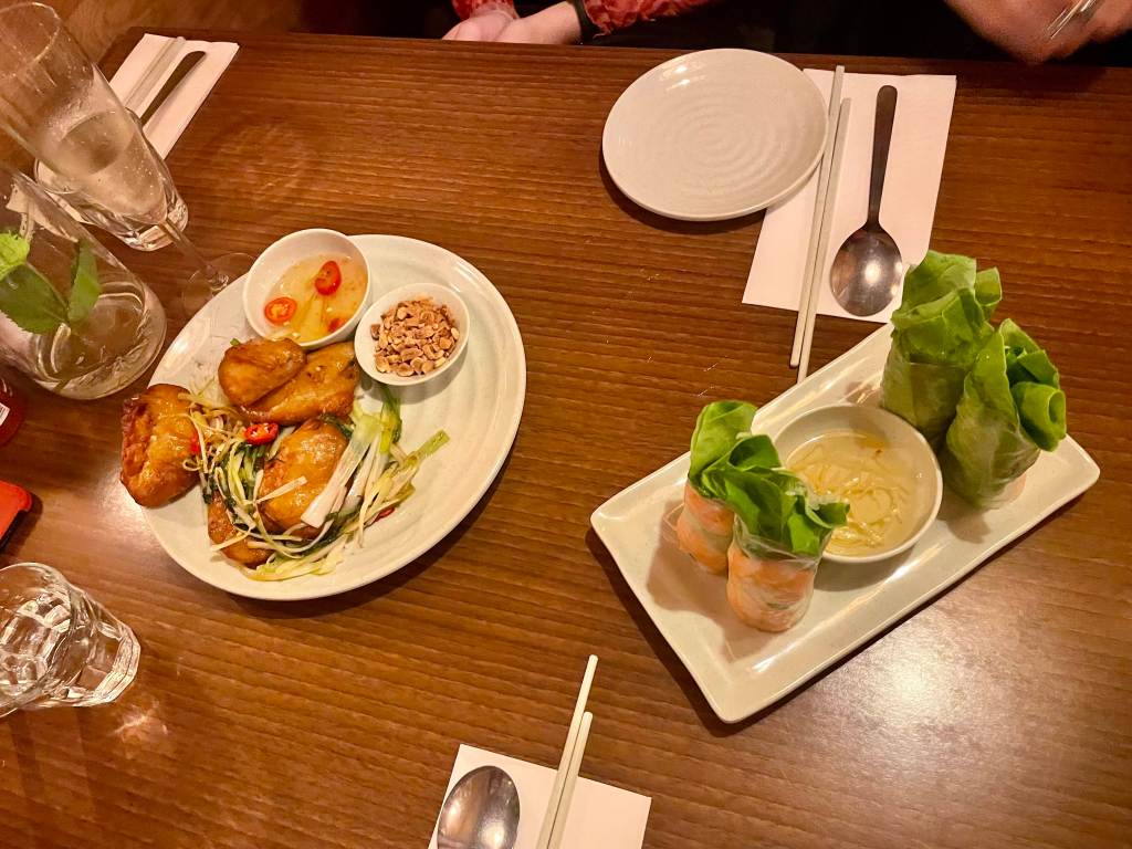 To start we ordered a selection of dishes including the prawn summer rice paper rolls, the vegan crispy spring rolls and the vegan Hanoi battered ‘fish’. The prawn rolls were the perfect fresh, light appetiser and the vegan fish made with marinated aubergine in a light batter was incredible.
