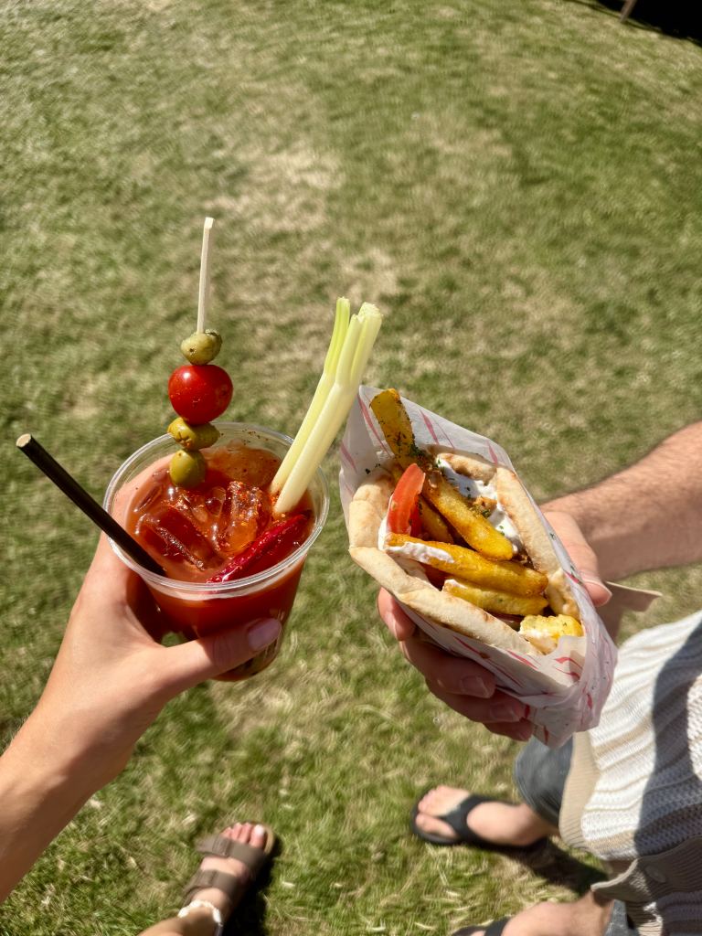 My boyfriend enjoyed his favourite Greek chicken Souvlaki wrap, whilst I couldn’t resist the fabulous looking spicy Bloody Mary cocktail with all the accompaniments.