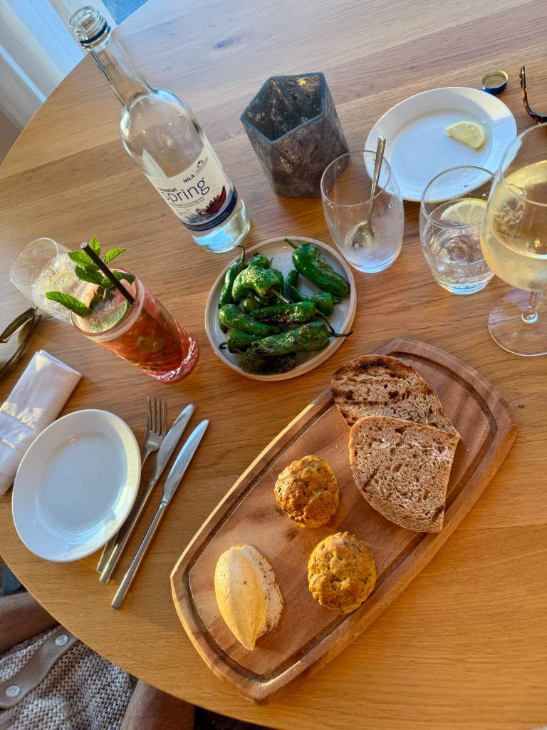 We shared the padron peppers and a bread board to start, followed by the chicken dish for my boyfriend and the roasted Monkfish for me.