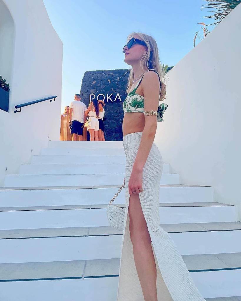 I did a quick outfit change just before dinner too, slipping into a cute brown mini dress paired with matching heels, my oversized Jaeger blazer, and my emerald-green velvet Sandro handbag.