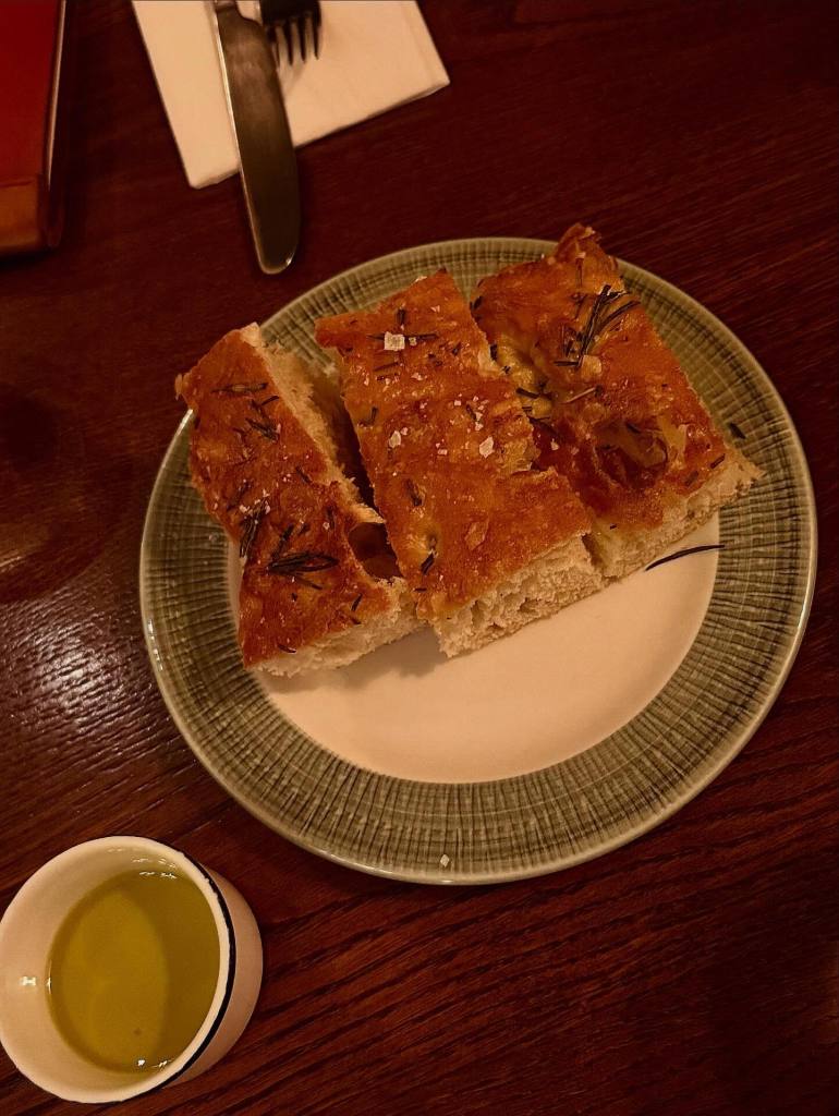 We started with warm focaccia bread and creamy buffalo mozzarella served with Jerusalem artichoke and a hazelnut pesto.