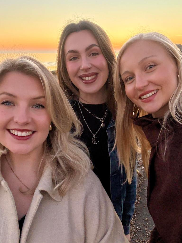 After a few sun-drenched hours, we headed back to Livy’s flat to get ready for the evening which turned into a wholesome little celebration of its own. Somewhere between doing our makeup and sharing outfit options, we surprised Cara with a chocolate cake, candles glowing, and yet more bubbles.