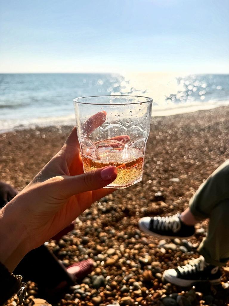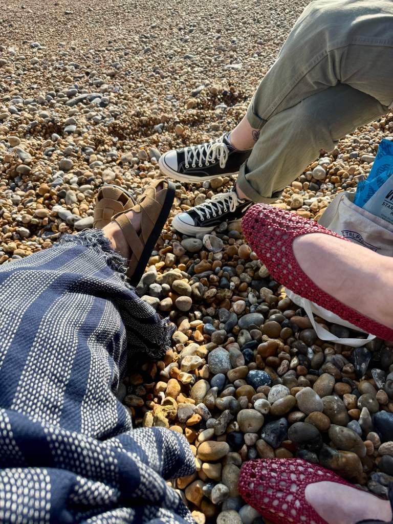 We kicked the afternoon off on the pebbled shores of Brighton Beach, soaking up the glorious spring sunshine with pink fizz in hand and camping chairs in tow, because practicality is the new chic when you’re in your 30s!